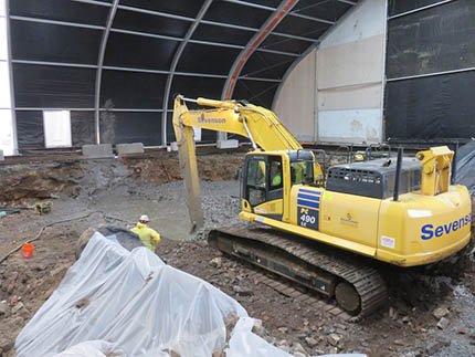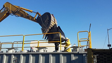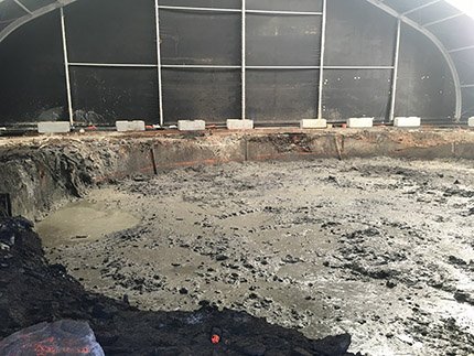 Excavating material from the Holder No. 2 tank in preparation for the Bucket Soil Mix (BSM) demonstration test