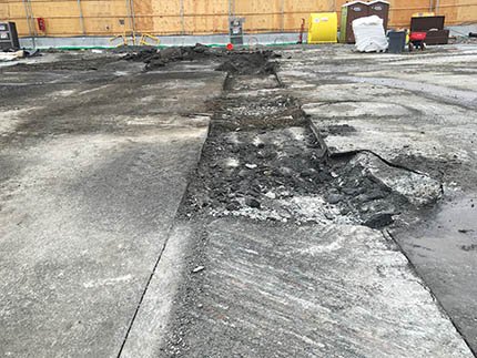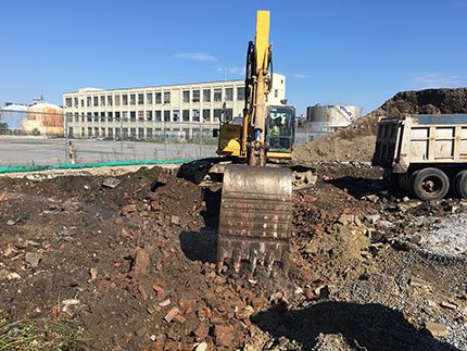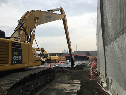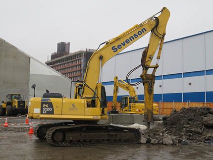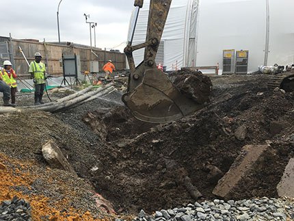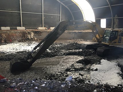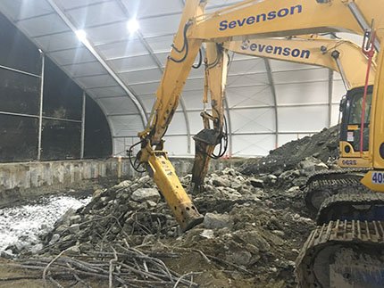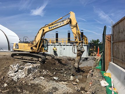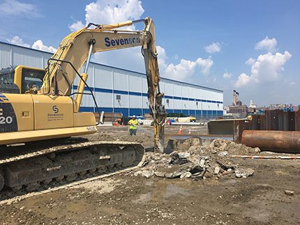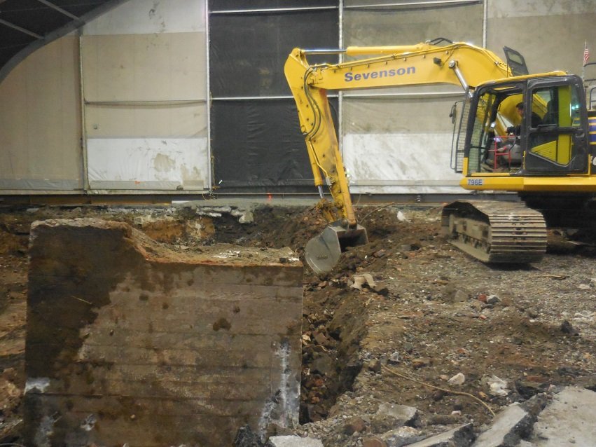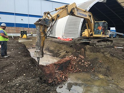 Breaking subsurface concrete structures in the western shallow excavation area.
