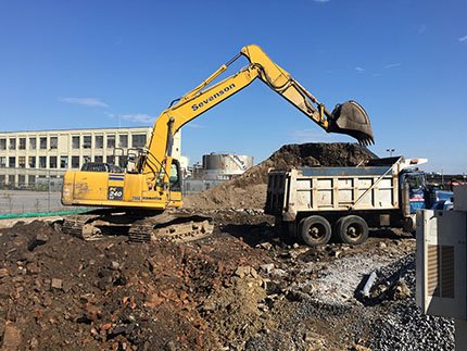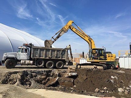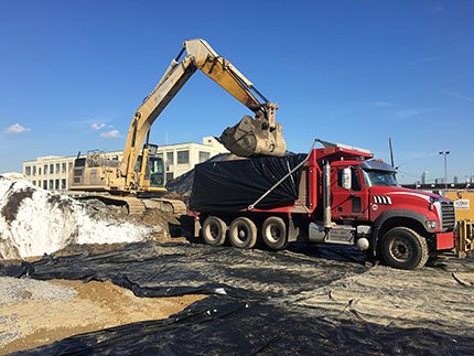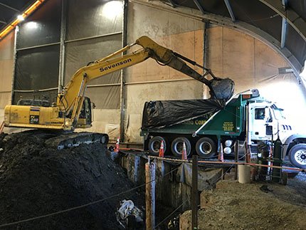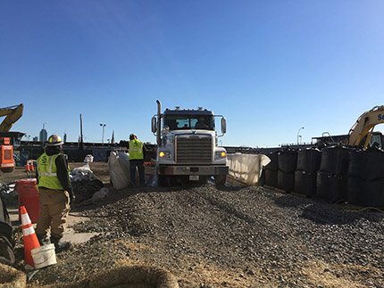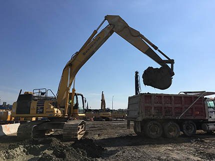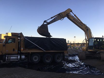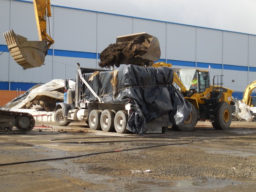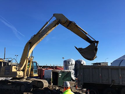 Loading the lined trucks with impacted soil for shipment to Bayshore Soil Management for treatment and disposal