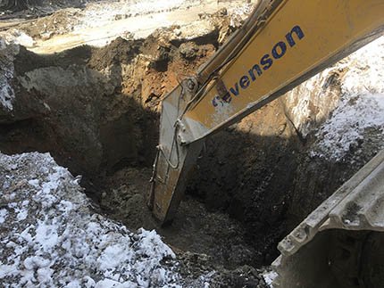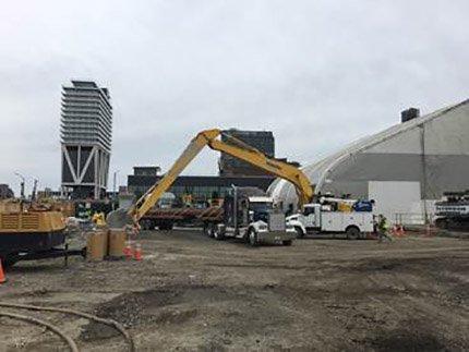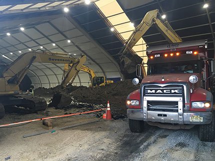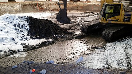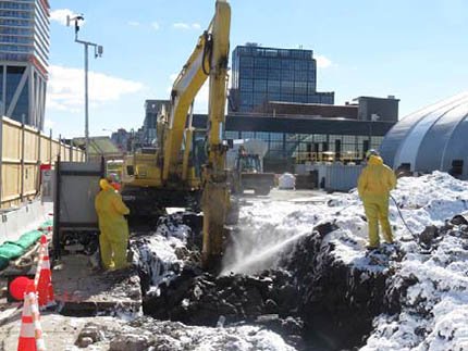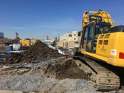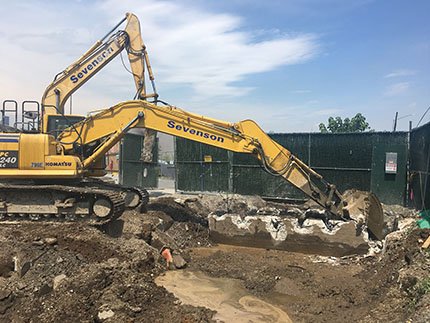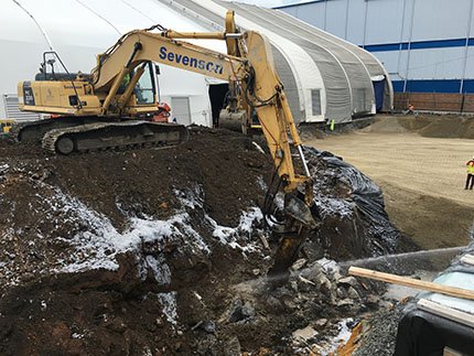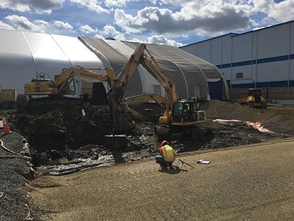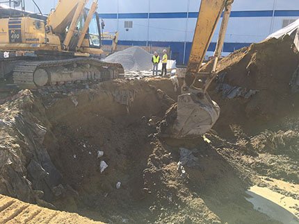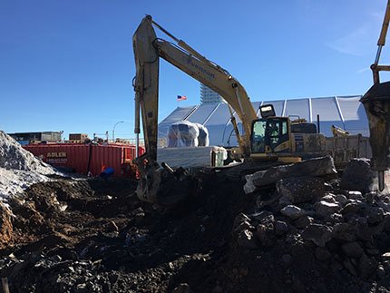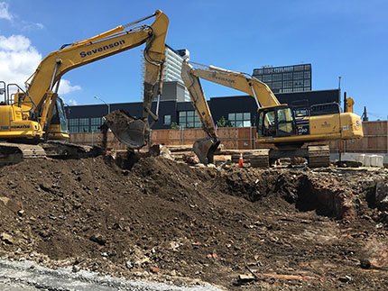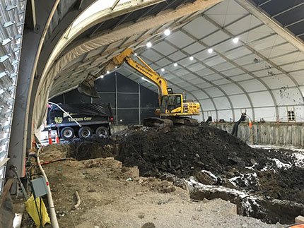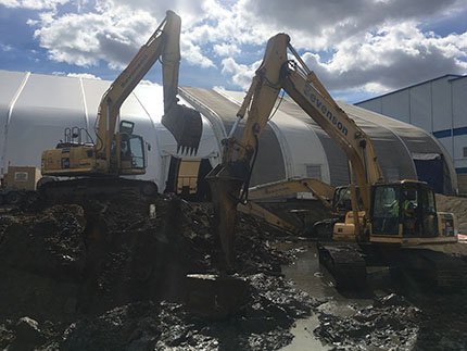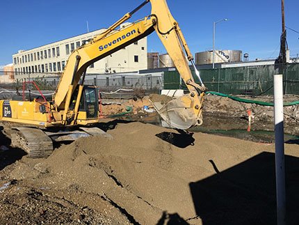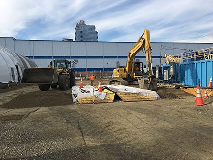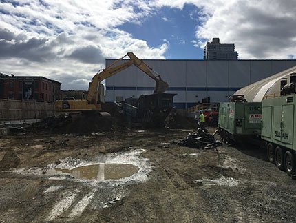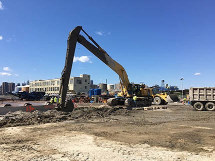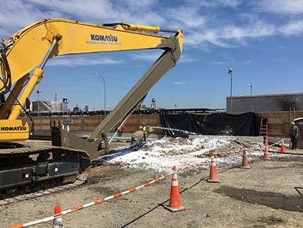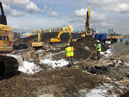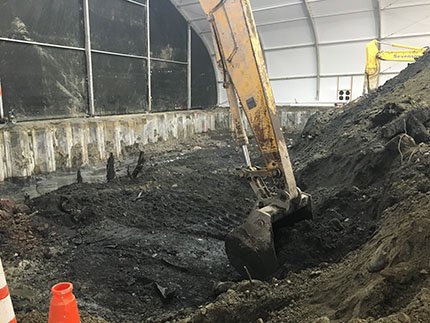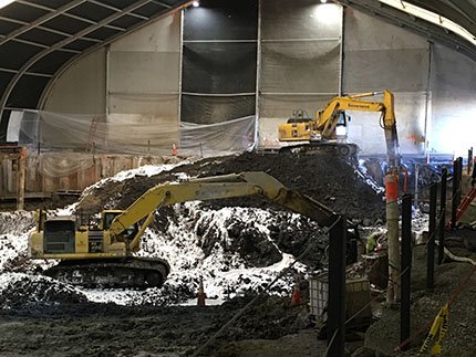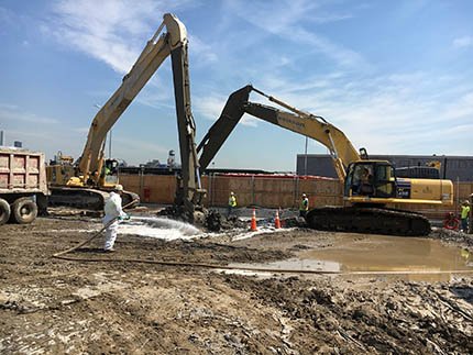 Excavating in the deep excavation and applying BioSolve for VOC and odor control.