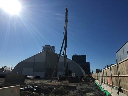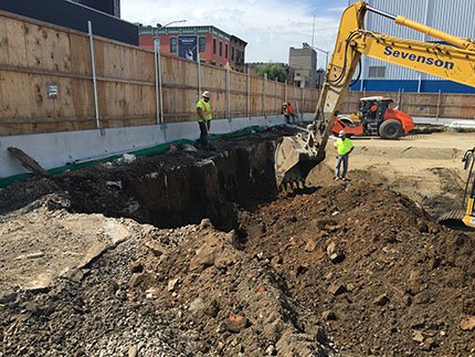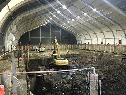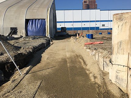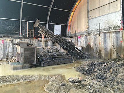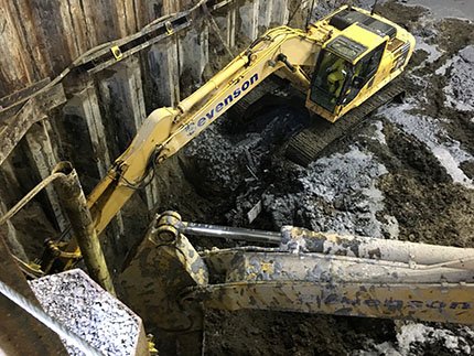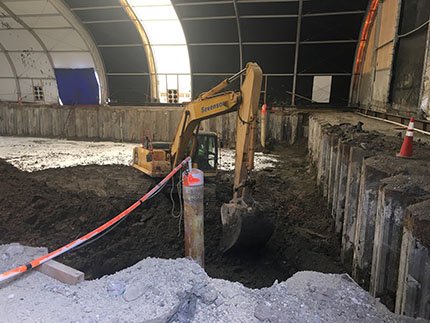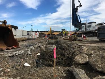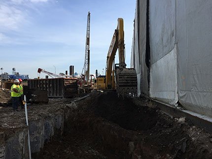 - Completed the installation of tiebacks through the support of excavation (SOE) sheet pile wall for external bracing: