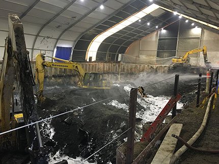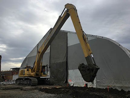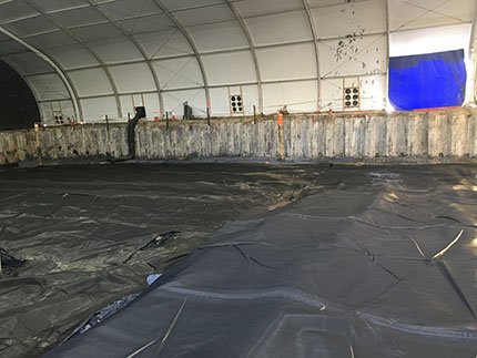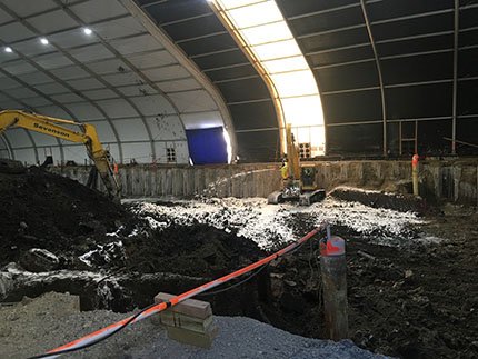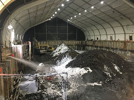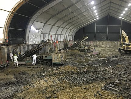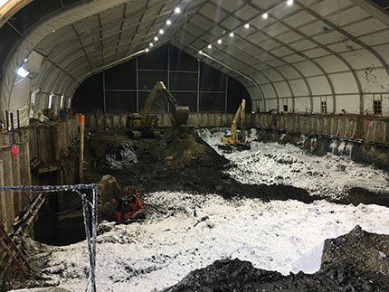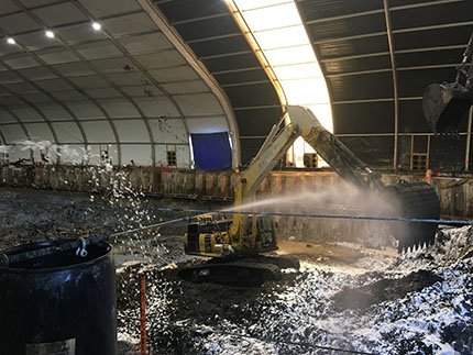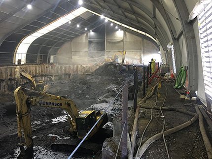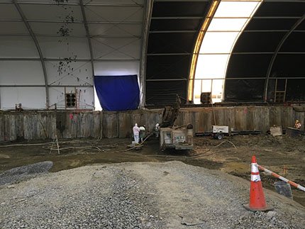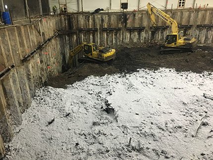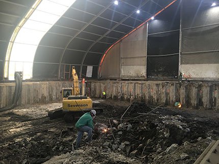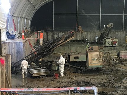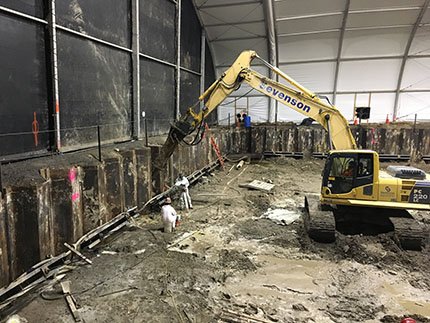 - Continued deep excavation within the support of excavation (SOE) wall in the temporary containment building (TCB); and