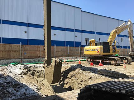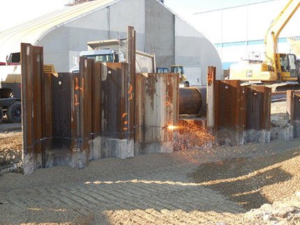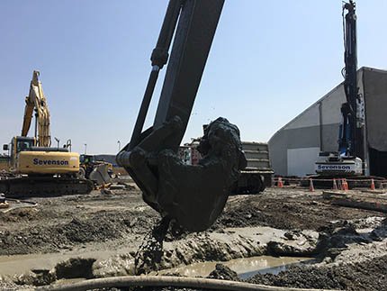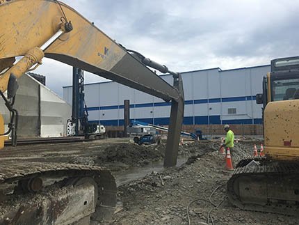 Excavating and removing impacted soils from the SOE wall sheet piles.
