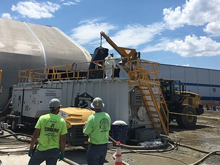 - Conducted a small, shallow preclearance test pit to inspect the outer edge of the Holder No. 2 tank and collected soil samples for the preparation of grout/soil mix cylinders to be tested for strength and permeability prior to beginning the bucket soil mixing (BSM).
