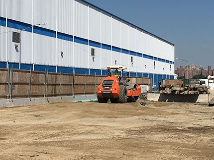 Installation of the decontamination pad for washing trucks and equipment prior to exiting the Site