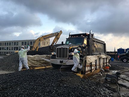Cleaning trucks on the decontamination pad prior to leaving the Site on N. 11th Avenue